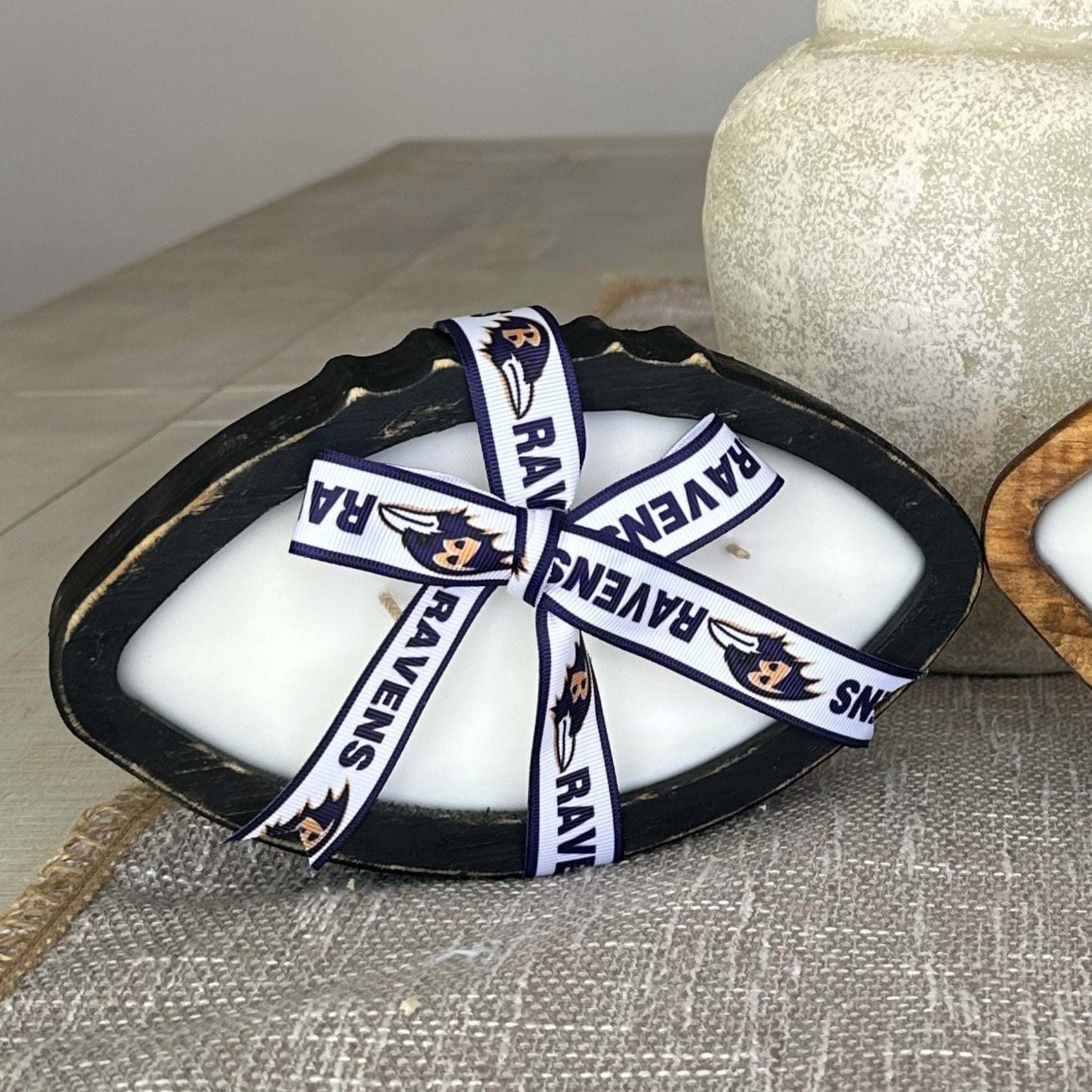 Smaller in size but big in impact, our Little Wood candle brings the heat. This 12oz wooden football-shaped candle is handcrafted for intimate settings, providing a cozy and seductive glow. Personalize your candle with your favorite team’s ribbon and unique scent. Ideal for a touchdown in any room, Little Wood ensures your space is always game-ready. Get yours and let the sparks fly.